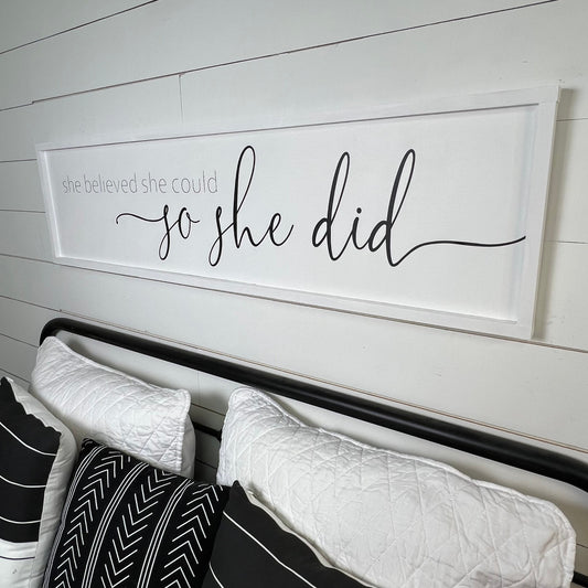 she believed she could so she did - above over the bed sign - above the couch - girl lady bedroom wall art [FREE SHIPPING!]