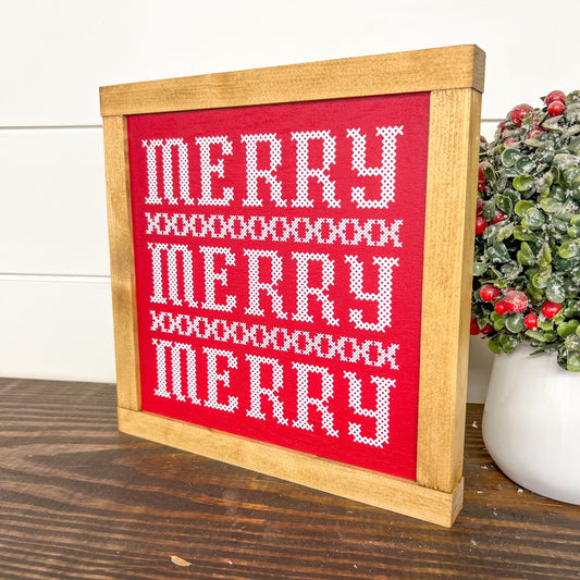 merry merry merry * cross stitch inspired wood sign [FREE SHIPPING!]