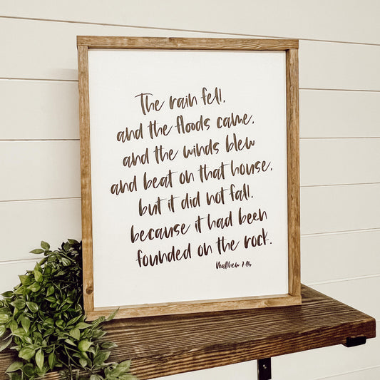 the rain fell * Matthew 7:25 *wood sign [FREE SHIPPING!]