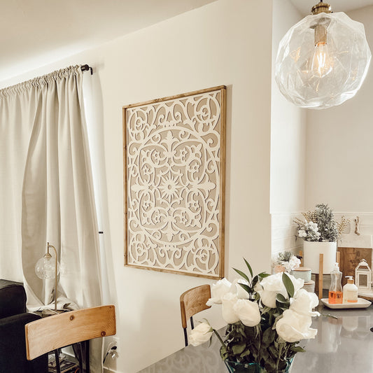 boho chic medallion wooden art. living room mantle decor oversized art [FREE SHIPPING!]