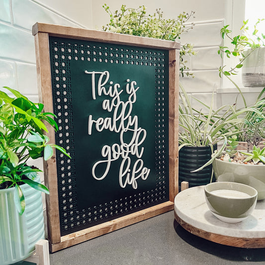 this is a really good life * cane background wood sign [FREE SHIPPING!]