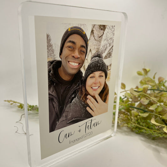 freestanding engagement photo block * your photos, your words * personalized acrylic picture block