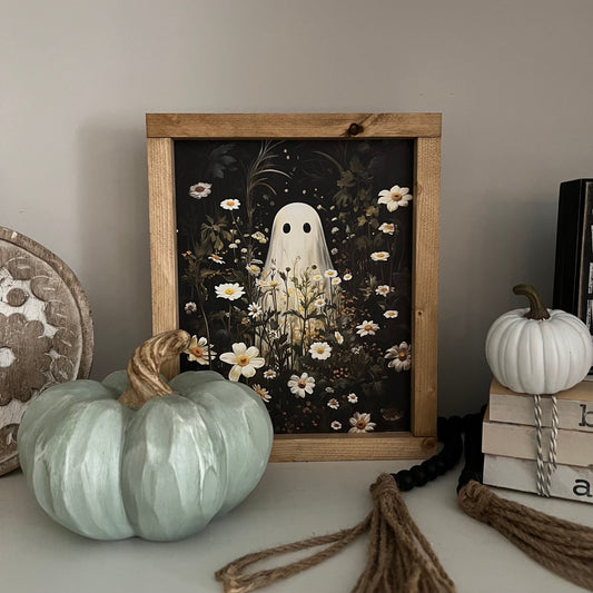 ghost in flower field * halloween decor * friendly ghost wood sign [FREE SHIPPING!]